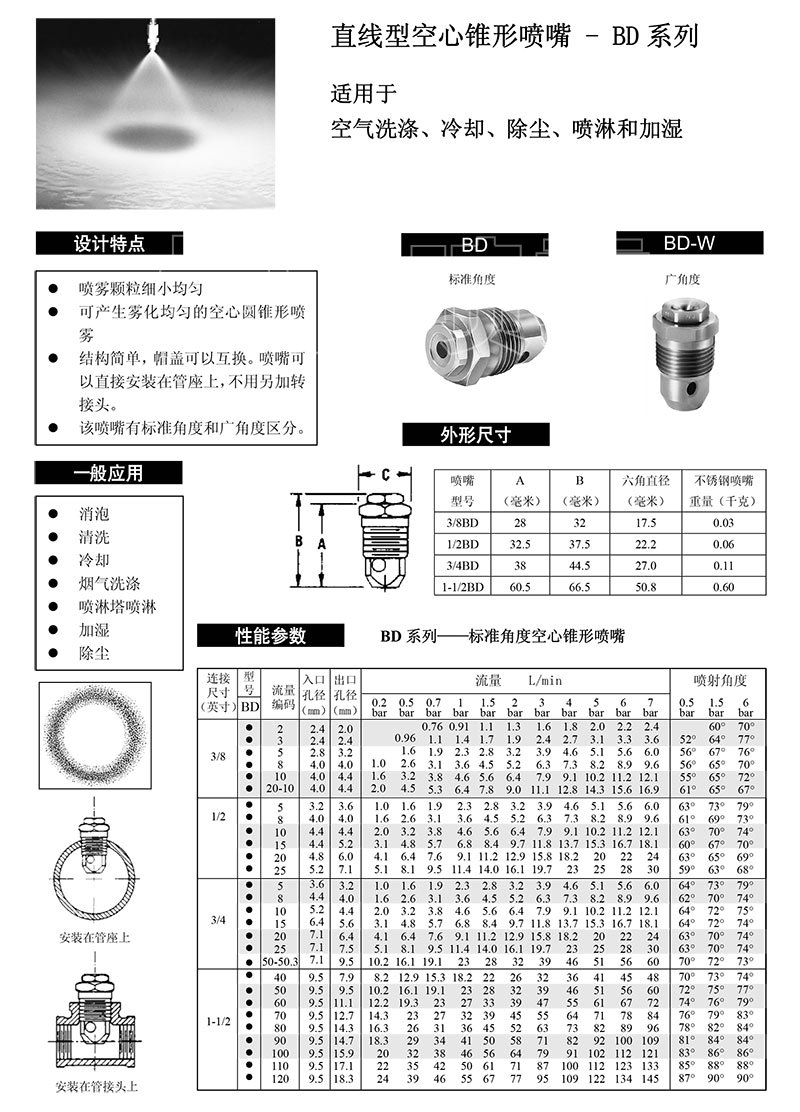 1. 直線型空心錐噴嘴-BD直線型空心錐噴嘴-BD直線型空心錐噴嘴-BD